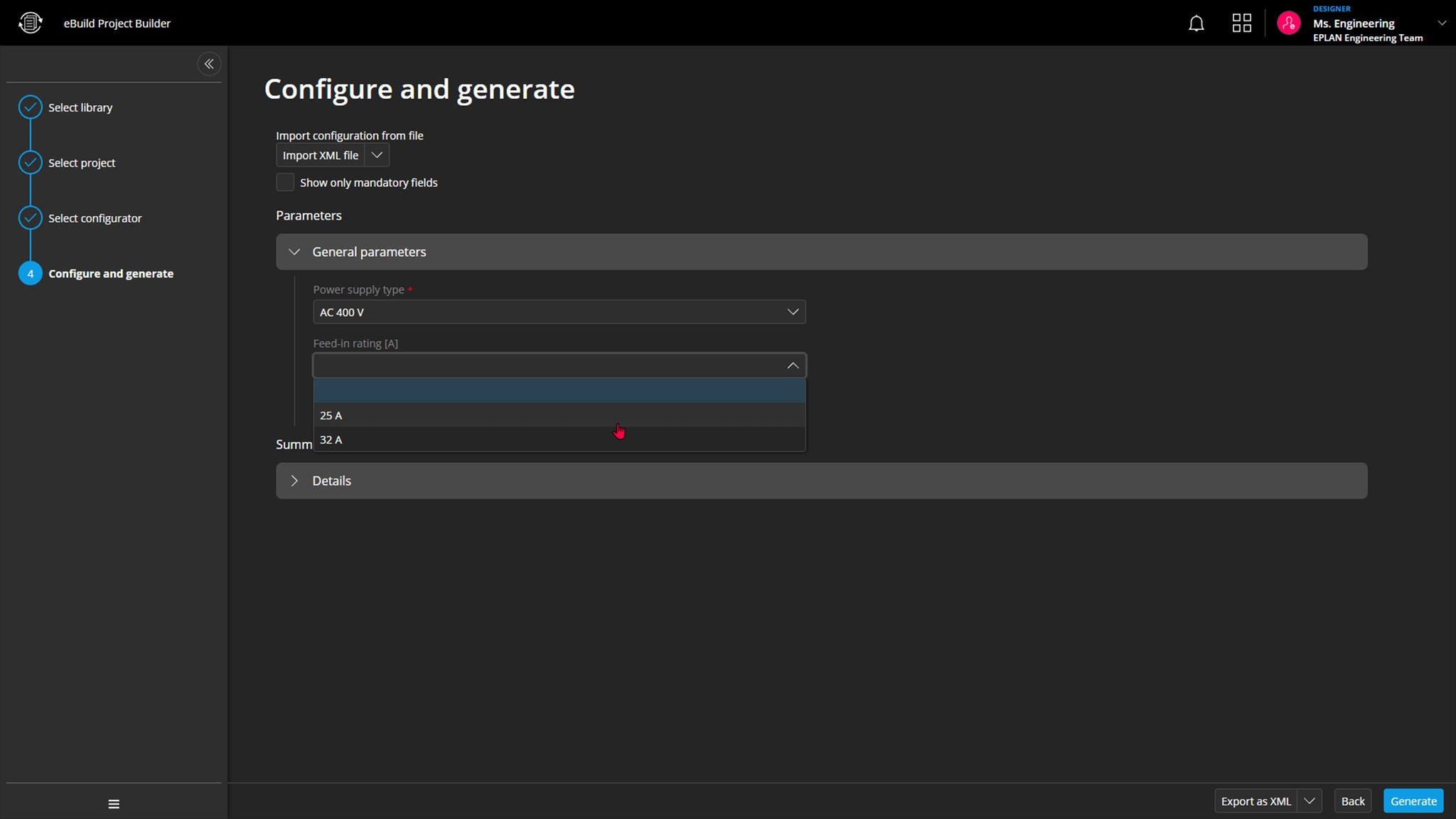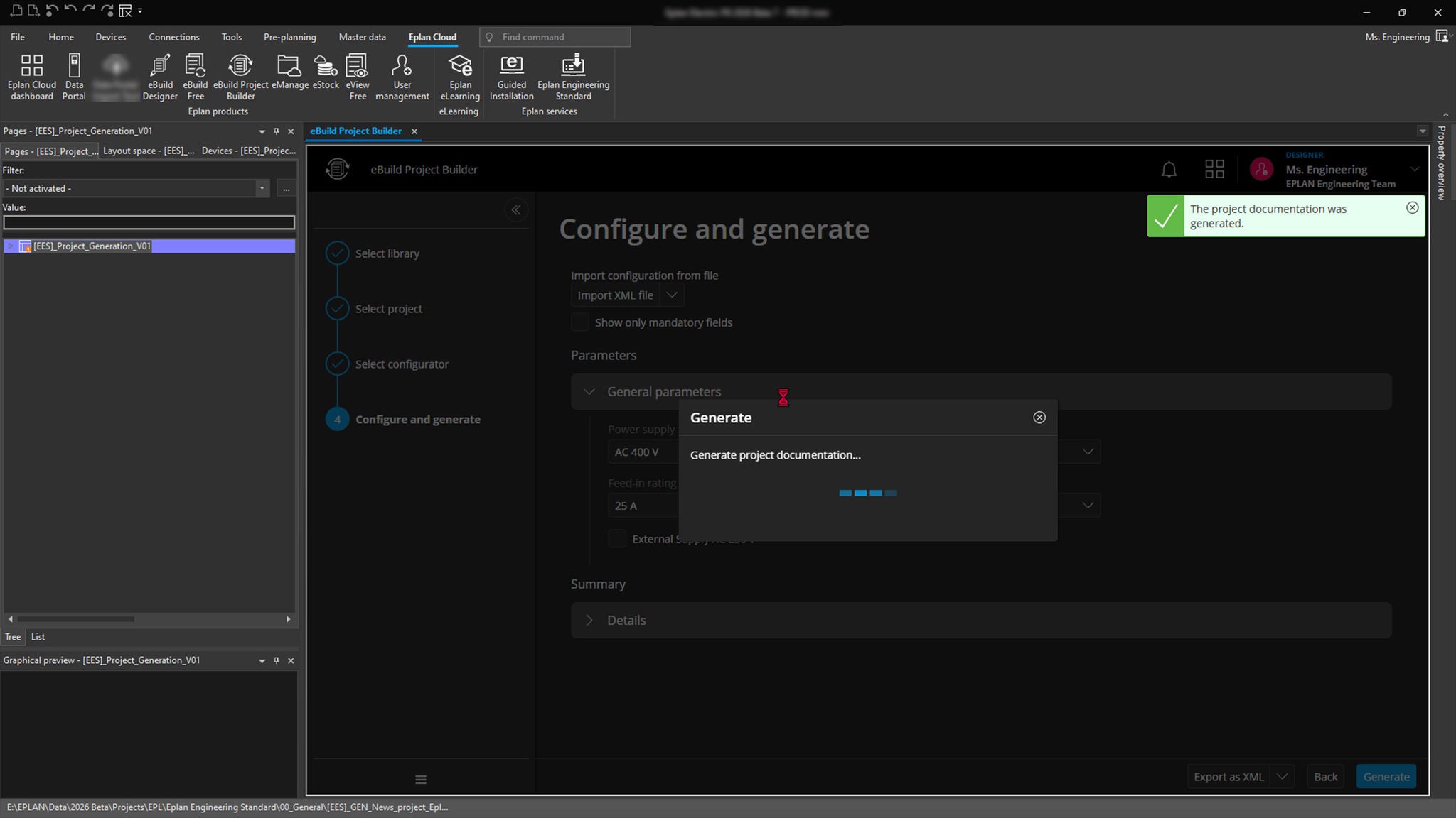 The automated project generation can be integrated into upstream configurators in CRM and sales processes. In what is known as Silent Mode, Eplan schematics can be generated for existing configuration results – meaning for certain machine options or variants, helping achieve a maximum of efficiency.